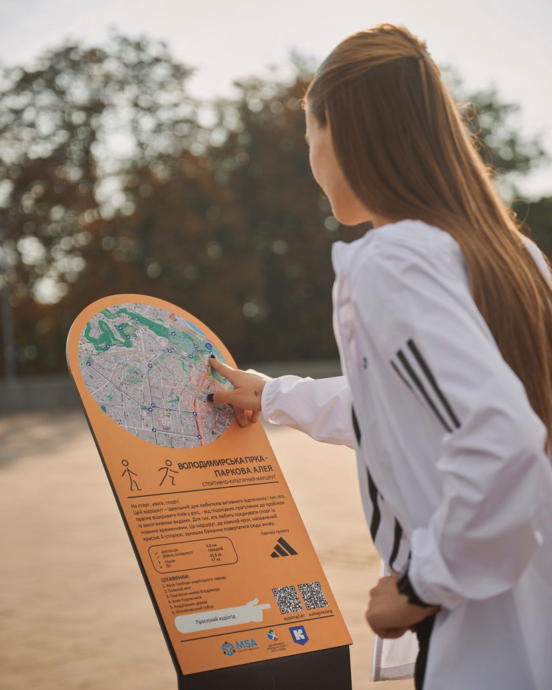 «Ці маршрути є важливим кроком до популяризації активного способу життя серед киян. Ми хочемо, щоб кожен міг покращити свій фізичний та психологічний стан через спорт», - зазначила вона. У кожному районі Києва буде встановлено інформаційні таблички, що сприятимуть орієнтуванню та знайомству з цифровим контентом. QR-коди на табличках надають доступ до аудіогідів, 3D-об'єктів і VR-турів. Дякуємо компанії Adidas за підтримку в реалізації цього проекту.