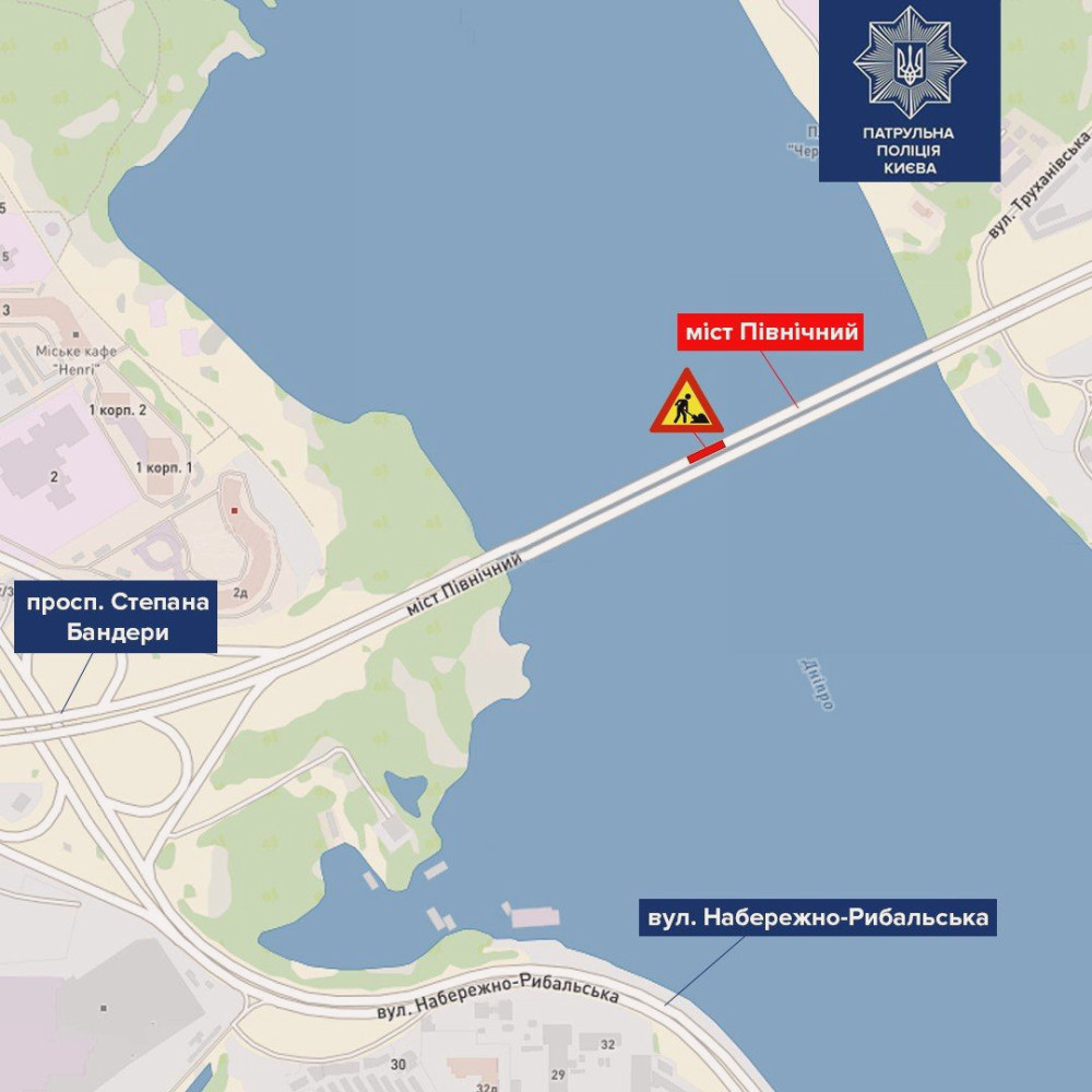 З 22:00 31 жовтня до 23:00 2 листопада рух на Північному мосту у Києві буде обмежено. Це пов'язано з ремонтом конструкцій деформаційного шва. За інформацією патрульної поліції Києва, обмеження вводяться за вказівкою Київавтошляхміст.