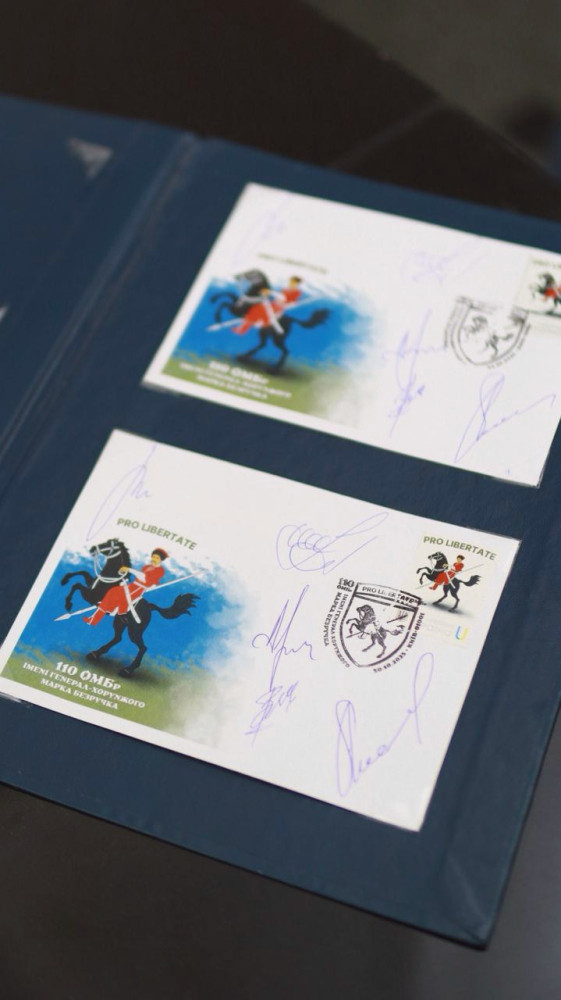 «Ця ініціатива стала реальністю завдяки творчому таланту художниці Анастасії Бас та фотографіям Антона Шевельова. На марках зображені назви населених пунктів, де 110-та бригада захищала територію», — зазначив Смілянський.