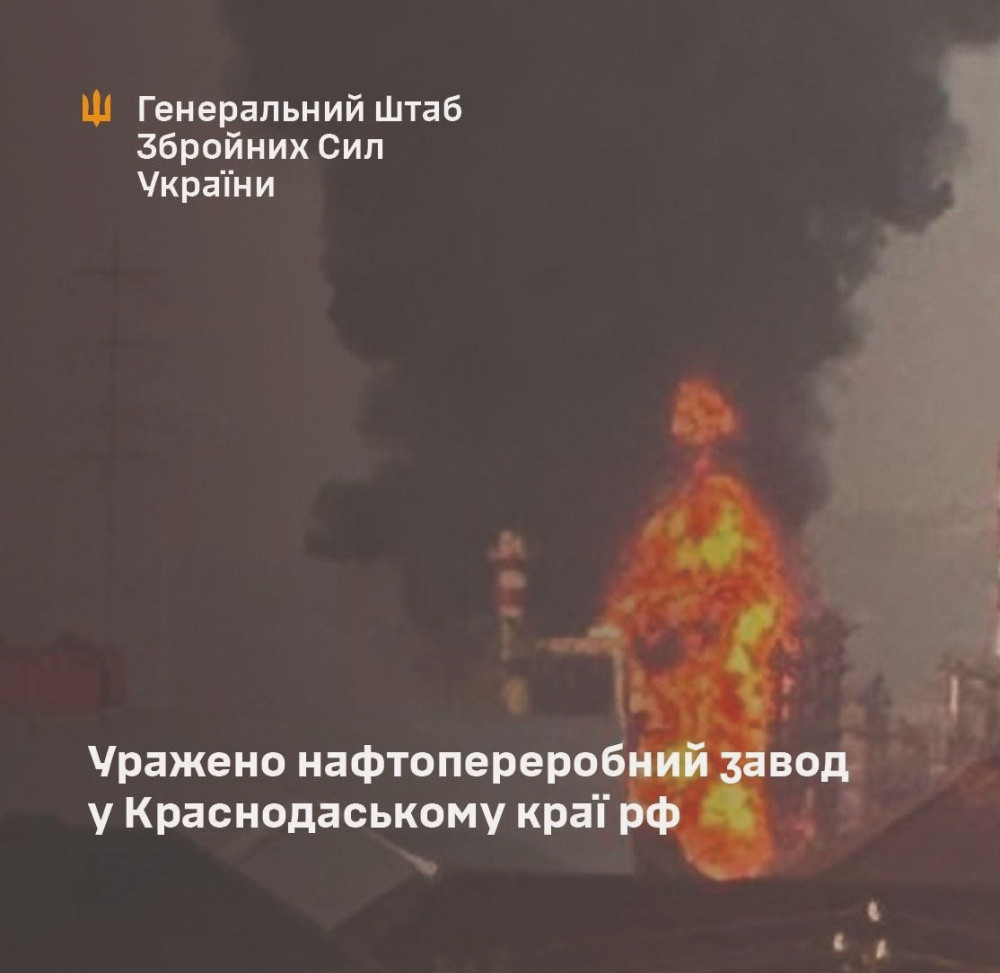 "Афіпський нафтопереробний завод у Краснодарському краї зазнав ураження. Його річна переробка складає 6,25 млн тонн, що є 2,1% від загального обсягу нафтопереробки в Росії".